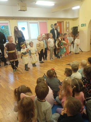 "Bajkowy Pokaz Mody" - konkurs zorganizowany z okazji Światowego Dnia Postaci z Bajek. Celem konkursu było zachęcanie naszych najmłodszych przedszkolaków do sięgania po książki i przenoszenia się w niesamowity świat bajek w nich zaklęty. Otrzymane przez dzieci nagrody pochodziły z Narodowego Programu Rozwoju Czytelnictwa na lata 2023-2025, którego celem jest promowanie czytelnictwa wśród dzieci w wieku przedszkolnym. Dziękujemy rodzicom za zaangażowanie i przygotowanie bajecznych strojów. Gratulujemy wszystkim przedszkolakom biorącym udział w konkursie.