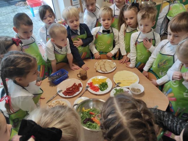 W piątek w naszym przedszkolu obchodziliśmy Dzień Zdrowego Śniadania. Celem inicjatywy było promowanie zdrowych nawyków żywieniowych oraz zwiększenie świadomości dzieci na temat wartości odżywczych posiłków. Przedszkolaki miały okazję poznać piramidę żywienia i dowiedzieć się, jak ważne jest codzienne spożywanie zdrowego śniadania, które dostarcza energii na cały dzień oraz wspiera koncentrację i rozwój.Była to doskonała okazja do nauki poprzez zabawę – dzieci mogły samodzielnie komponować swoje posiłki- kanapki i sałatkę, wybierając zdrowe składniki oraz dowiedzieć się, które produkty mają najwięcej witamin.