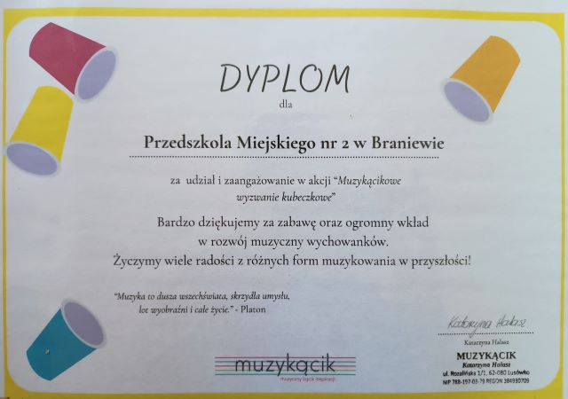 Za aktywny udział oraz promocję zdrowego stylu życia i aktywności fizycznej Ministerstwo Sportu i Turystyki oraz zespół organizacyjny 9 Europejskiego Tygodnia Sportu przekazał nam w dowód wdzięczności Dyplom Podziękowania, Dziękujemy