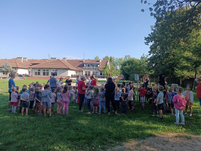Dnia 27.09.2023r. w naszym przedszkolu odbyła się ,,Spartakiada” w ramach akcji ,,Europejski tydzień sportu”. Brały w niej udział 5 i 6-latki z naszej placówki. Celem akcji jest przede wszystkim rozwijanie sprawności fizycznej dzieci, nauka współdziałania w zespole i respektowanie zasady „fair play”.