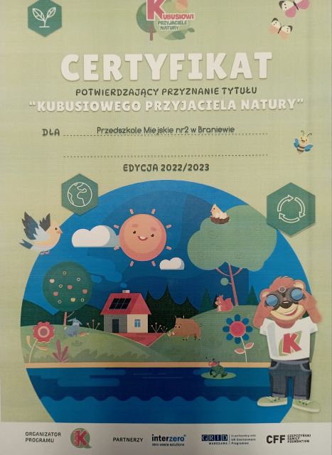 Czytaj więcej: Certyfikat z programu " Kubusiowi Przyjaciele Natury"