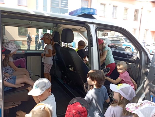 Koniczynki wybrały się do Powiatowej Komendy Policji w Braniewie. Głównym jej celem było zapoznanie z pracą policjantów, zwiedzenie budynku komisariatu i przypomnienie ważnych zasad bezpieczeństwa, a także poznanie pracy policjantów. Dzieci obejrzeły świetlicę gdzie policjanci mają szkolenia i odprawy. Widzieły sprzęt, który wykorzystują do swojej pracy policjanci: latarkę, lizak „stop”, kajdanki, pałkę policyjną. W czasie spotkania pan policjant przypomniał nam numer alarmowy na policję 997 i 112. Następnie dzieci przeszły na plac, gdzie mogły obejrzeć policyjne pojazdy.