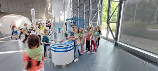 Dnia 23 maja sześciolatki wybrały się do Centrum Ekspertymentów w Gdyni. Dzieci podczas zwiedzania wystaw: „Hydroświat”, „Drzewo życia”, „Akcja człowiek”, „Niewidoczne siły” oraz „Wirtualny świat wynalazków Leonarda da Vinci” uczyły się poznawać świat w sposób ciekawy, namacalny. Przedszkolaki z wielkim entuzjazmem oddawały się licznym eksperymentom naukowym, korzystały z interaktywnych pokazów i instalacji. Wizyta w „Centrum Nauki Eksperyment” sprawiła uczestnikom mnóstwo radości i niezapomnianych wrażeń. Dzieci były zdziwione, że nauka może być połączona także ze świetną zabawą.