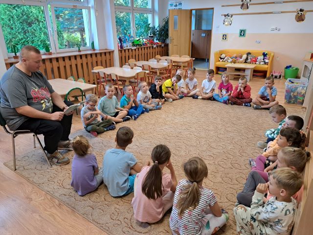 Głośne czytanie dzieciom to najpiękniejszy czas, jaki możemy zaoferować najmłodszym. W dniach 28.09.2023r. oraz 02.10.2023r. odwiedzili nas chętni rodzice dzieci z grupy ,,Dzwoneczki”- pan Łukasz i pani Iza, którzy przeczytali nam bajki pt.,, Królik Franek i historia nieśmiałego misia” oraz ,,O Wilku, który chciał zmienić kolor”.