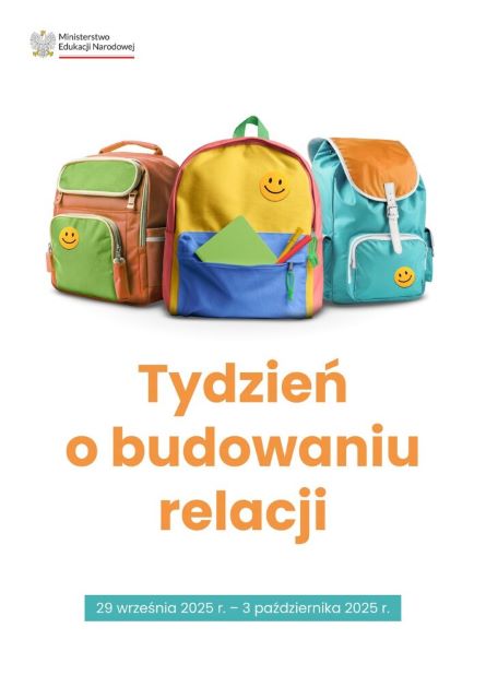Nasze przedszkole bierze udział w Tygodniu Budowania Relacji - inicjatywie rekomendowanej przez Ministra Edukacji Narodowej, który odbędzie się w dniach od 29 września do 3 października 2025 r.